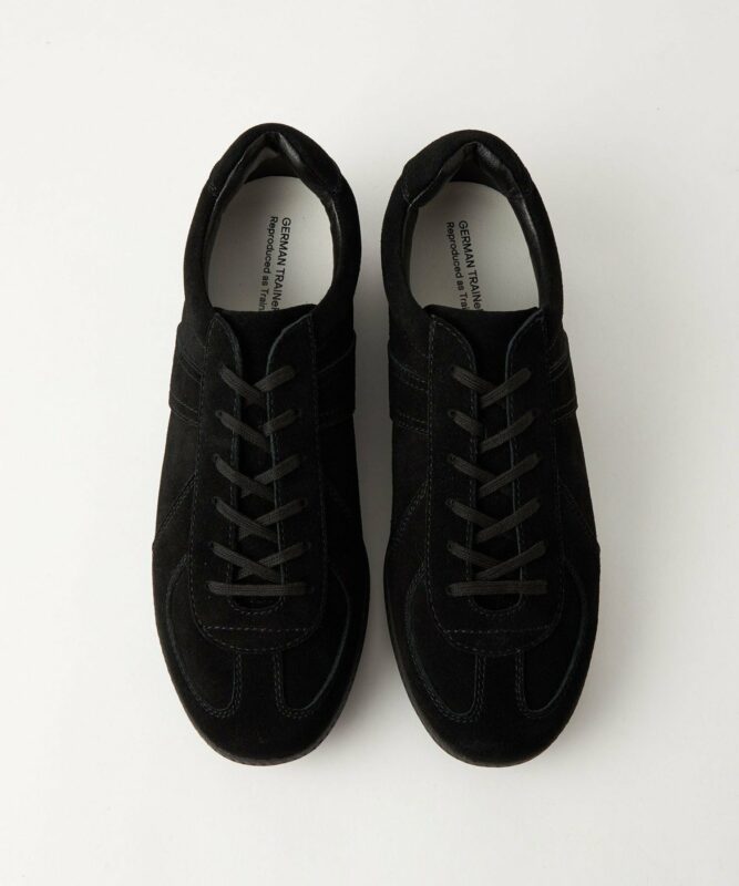 一般的なジャーマントレーナーは、レザーやナイロンの切り替えがアクセントになっていますが、この GLR ジャーマントレーナー は驚くほどミニマル。その仕様が、革靴のような上品さを生んでいます。