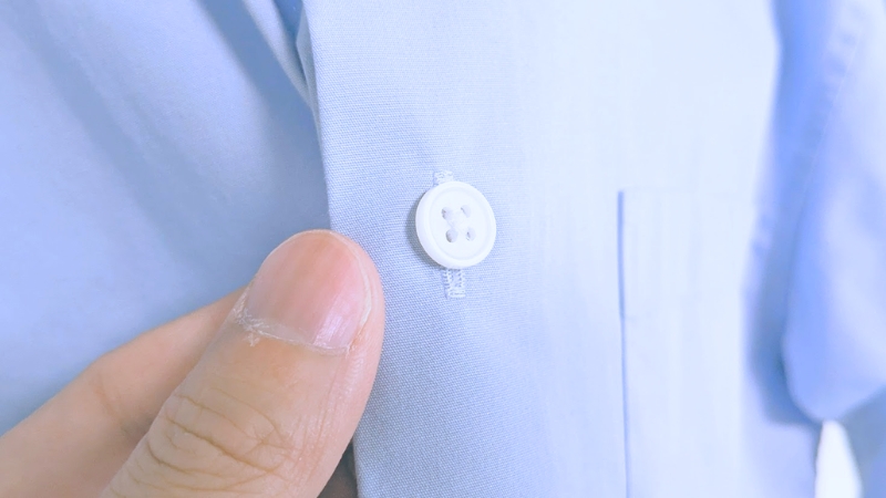 ボタンはシェル調で、安っぽさがなく好印象。前立てなしのすっきりしたフロントが、シンプルで清潔感のある印象をつくってくれます。